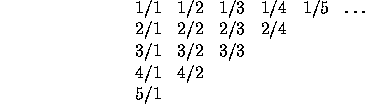 在此圖中,第一項是1/1,第2項是1/2,第三項是2/1,第四項是3/1,第五項是2/2,以下依此類推。